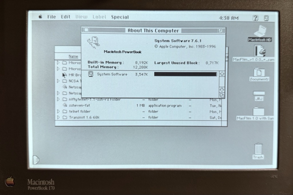 That Powerbook basically got me through my college years. My first year I was working in the performance arts center at the school, and built a computer lab with aincent (even then) Mac Plus computers. My second year I got a job on campus with the instructional technology division, and had a Quadra 800 on my desk, so the PowerBook was relegated to just a portable auxiliary to a much more powerful desktop, which helped it remain usable much longer than its performance would suggest.
